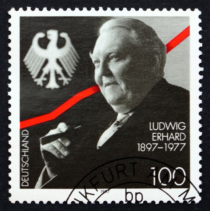 2. Bundeskanzler der Bundesrepublik Deutschland vom 16. 10. 1963 - 30. 11. 1966, Wirtschaftsminister, gilt als "Vater" der Sozialen Marktwirtschaft und des deutschen Wirtschaftswunders (Deutschland, 1897 - 1977).